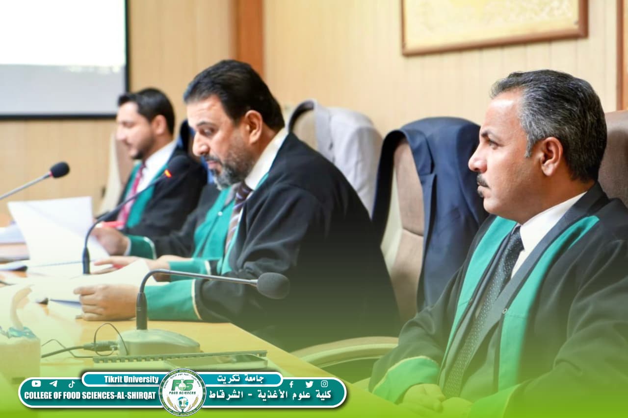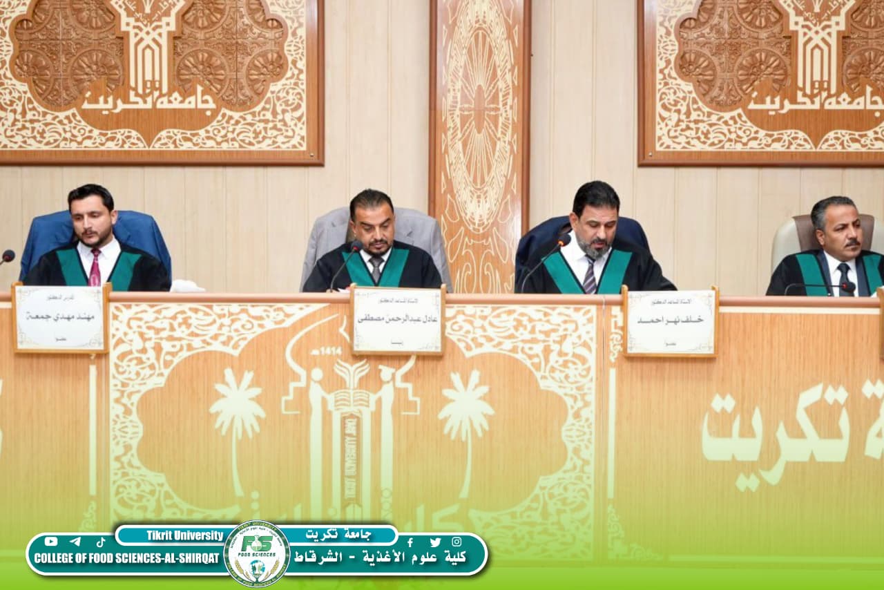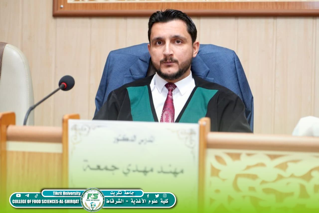 شارك المدرس الدكتور مهند مهدي جمعة، رئيس قسم تكنولوجيا الأغذية في كليتنا، في عضوية لجنة مناقشة رسالة الماجستير للطالبة آية طارق زايد في جامعة تكريت – كلية الزراعة / قسم علوم الأغذية، وذلك يوم الأحد الموافق 1 آذار 2026.
